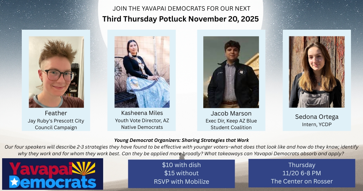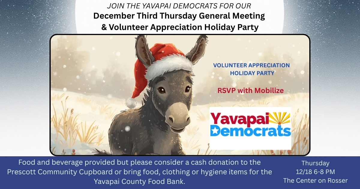 The Yavapai County Democratic Party believes in dignity for all people, a healthy planet, and responsible government.